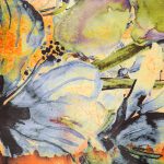Es sencillo, colocas la pintura en el lienzo y la barres (swipe) como hacen las escobas en el suelo. La pintura se aglutina en pisos y capas. Poco a poco los colores inferiores salen a la superficie originando un espectáculo.